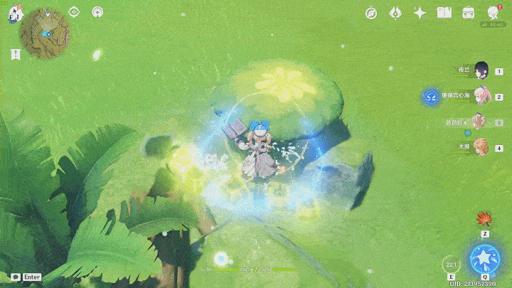 在绽放反应中,绽放之核被默认为敌方单位,并且携带草元素,刚好可以触发芭芭拉水环的判定机制,只要有敌方进入水环范围,而原核上限5个,产生新原核旧原核就会炸,便会不断造成“连锁式”的爆炸,产生非常夸张的视觉效果。