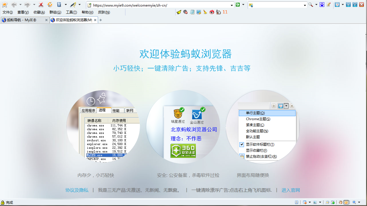 蚂蚁浏览器启动只需1秒,小巧轻快