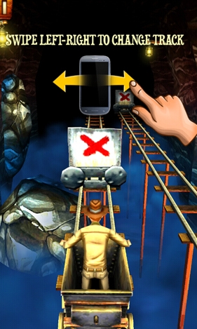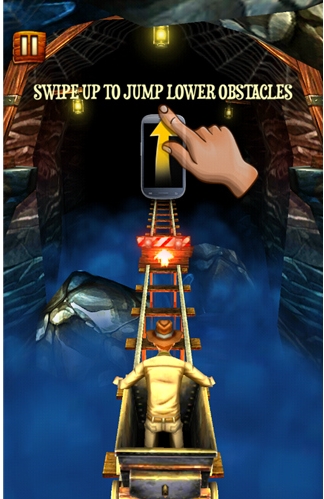 6、碰到静止通行的障碍物,向左或向右滑动,跳跃到另一条轨道上;
