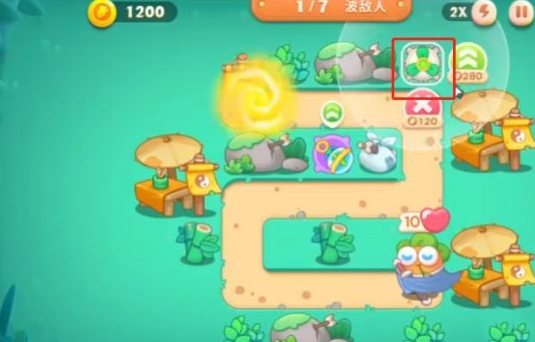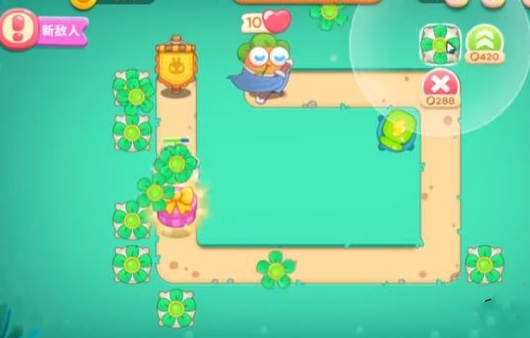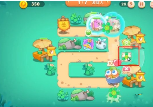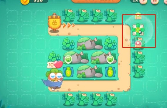 1、首先我们看到右边有一个道路尽头的风扇,升级他。 2、这边可以再加一个风扇,升级。 3、右边中间需要加一个风扇。 4、终点前增加一个炮台,这个炮台要先清理石头(下面的)。 5、地图中间可以增加炮台用来清理道具,新的炮台可以不动。