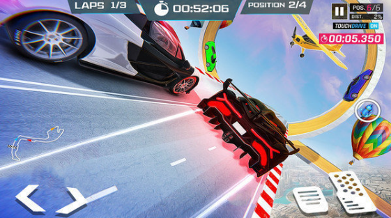 1、独特的无尽赛车模式,无尽的赛道设计,玩家必须不断超越自己。