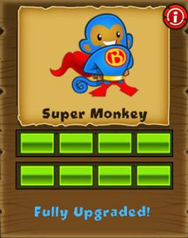 (每发飞镖可以攻击2个气球)→(每发飞镖可以攻击3个气球)→(每次可以发射三枚飞镖)→(增加“变身”技能,把攻击范围内的飞镖猴变成超猴)