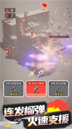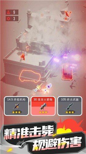 4、玩家将用强大的武器不断的战胜一个又一个厉害的敌人,通过抛物线的方法进行战斗。