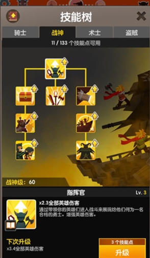 这次的技能树真是厉害了,在游戏中你会获得技能点,有三个技能树你可以选择从哪个开始加,每个都好想要啊,不过技能点不是那么好得到的,除此之外还可以获得武器,武器可以升级,如果收集了全套的武器套组还能变得更强,当然,武器和之前说的装备都不是那么好得到的,由此可见,放置游戏都一样,只有玩的时间长才能当上老大,时间越久你就越厉害。