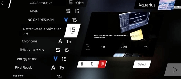 2.玩家可以选择一首歌曲的其他难度,但是不能选择同一歌曲的同一难度。