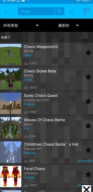 4、如果混沌模组没有用就把它的资源包和行为包放到最上面。你学会了吗?第一张图是混沌模组搜在这个软件里搜索Chaos第一个。
