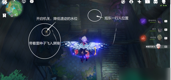 往地图的西方向下看,先开启机关,再与旭东对话接取任务「全能美食队·深潜者」(若没有旭东,可能前置任务未完成)