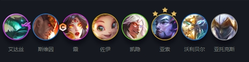阵容搭配:艾达斯、斯维因、霞、佐伊、凯隐、亚索、沃利贝尔、亚托克斯。