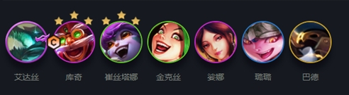 阵容搭配:艾达、库奇、崔丝塔娜、金克丝、萨娜、露露、巴德。