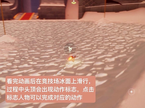 7、看完动画后在熘冰场上滑行,点击旋转按钮开始跳跃;