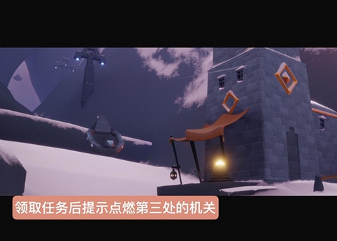 2、动画提示玩家要去点亮下图里的机关,乘坐新的缆车,我们可以去坐完;