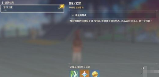 3、很明显只能乖乖去等电梯,下来后到顶出来,走到任务地点完成,领取下一阶段任务——找老板淮安。