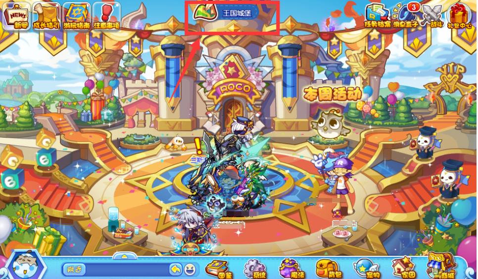 1.首先玩家进入洛克王国后,在王国城堡这个地图界面,点击地图。