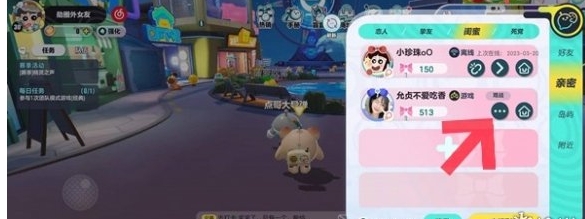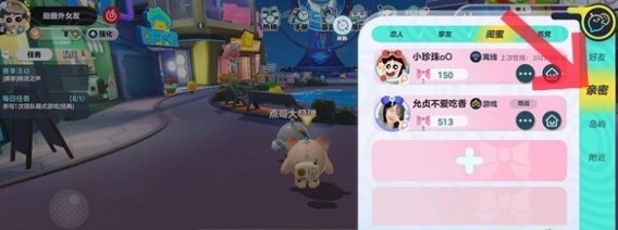2、在弹窗中找到右侧的亲密选项,然后就会展示出已经建立关系的亲密好友。