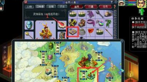 2、打开背包,从中寻得“飞民塑行符”,并选定前往【建邺】。