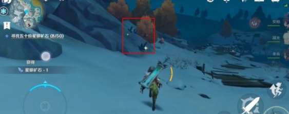 玩家传送到眠龙谷对面的传送点后,朝着进入雪葬之都·近郊的山路走,可以在一块深赤之石后面找到一处有矿点,全收下大概可以获得5块以上的星银矿石。