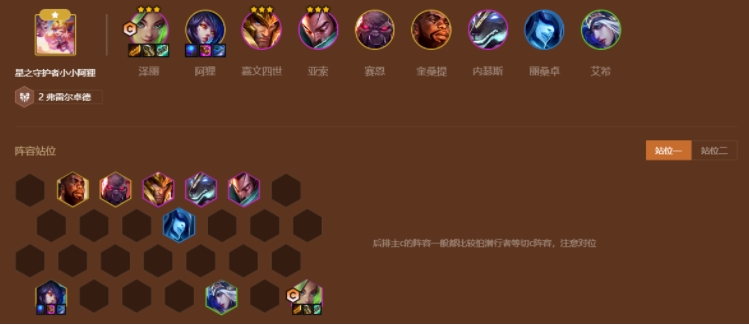 (1)阵容成员:泽丽、阿狸、嘉文四世、亚索、赛恩、奎桑提、内瑟斯、丽桑卓、艾希