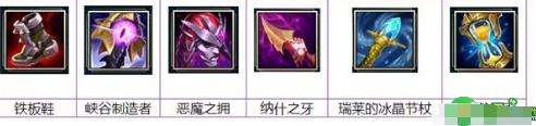 铁板鞋+峡谷制造者+恶魔之拥+纳什之牙+瑞莱的冰晶节杖+中娅沙漏