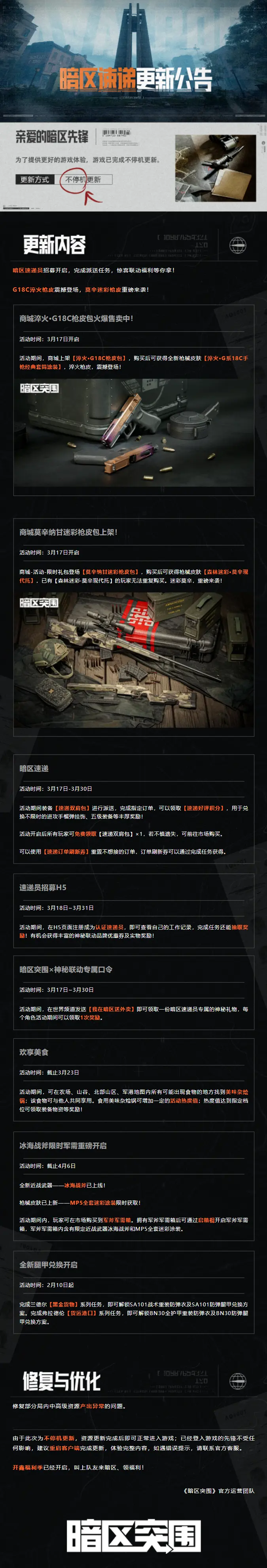 暗区突围3月16日更新介绍