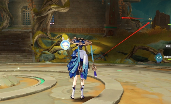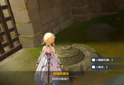 7、触摸宝箱后的模糊的碑铭,然后去下方碑铭处,开启挑战。
