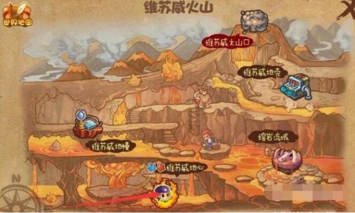 3、打开维苏威火山地图后,点击上方小地图,进入维苏威地心。