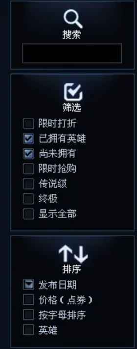 2、点击进入后,左边会出现类似搜索栏的东西可以帮助你购买想要的皮肤。