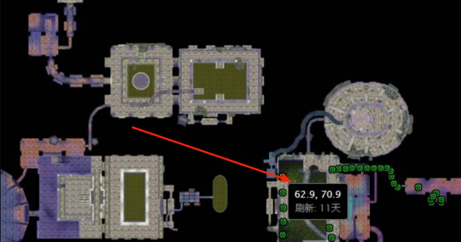 3、最后击杀普希林后100%掉落,进门后到坐标位置(62.9,70.9)处可以找到,如下图坐标。