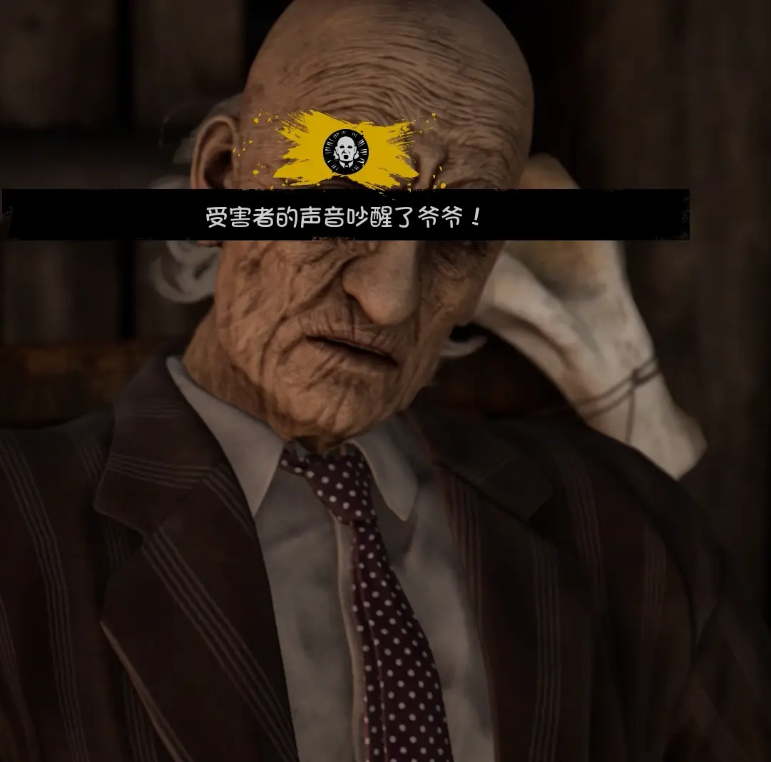 游戏开始后在离“爷爷”比较近的地方弄出声响会提示“爷爷被吵醒”,他醒了之后会立刻吼叫,吼叫期间人不可以动,动了就直接暴露气场。此后爷爷从1级开始会间歇性吼叫(详见下文屠夫攻略)。