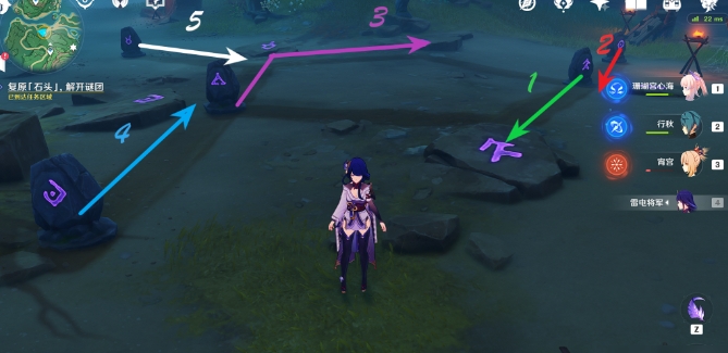 11、使用普攻攻击即可点亮石头,如果用元素战技等方式很容易把旁边的石头也一起点亮了。