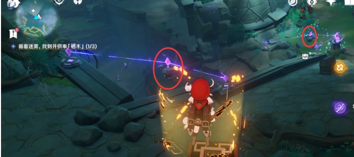 在前往三处地点的路途中因为浓雾我们可能会迷失,因此建议队伍里携带雷元素角色通过雷石保证续航。