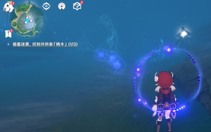 (2)供奉栖木(找到三个羽毛即可),通过元素视野我们就能找到羽毛位置,此外在小地图上也能看到羽毛位置,下同。