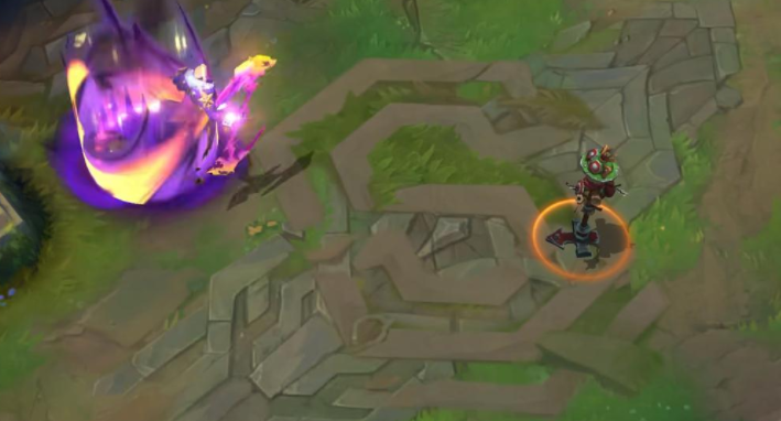 1、很多玩家刚接触到德莱文的时候,开启Q技能,普攻出去,然后地上会“随机”出现一个飞斧落点标记,玩家们知道一旦没接住,Q技能的效果就会中断,输出大幅降低。于是一个个疲于奔波,追着落点跑,导致自己苦不堪言,还容易被人蹲点吃到控制。
