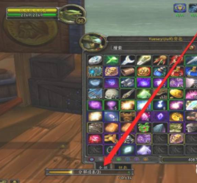4、 打开背包,选择要分解的装备,并确保这些装备是40至46级的绿色装备。
