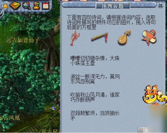 跟随光芒找到目标后,右击使用墨魂灯,会提示“眼前出现了一个沉默的机关人”时,就说明找到墨魂笔的踪迹了,然后出现一个机关人NPC,点击机关人触发一个趣味玩法——拖拽答题。如何玩呢?其实很简单,根据文字的描述,看这个文字描述的东西是什么,然后点击上面四个道具里面和文字描述相对应的进行拖拽,拖到对应文字描述上即可,其实就是配配对玩法。但自己配对好了后,觉得自己配对了,就点击确定(可能会自动确认)。如果点击确定,没有配对成功,则继续配对,直到成功为止。