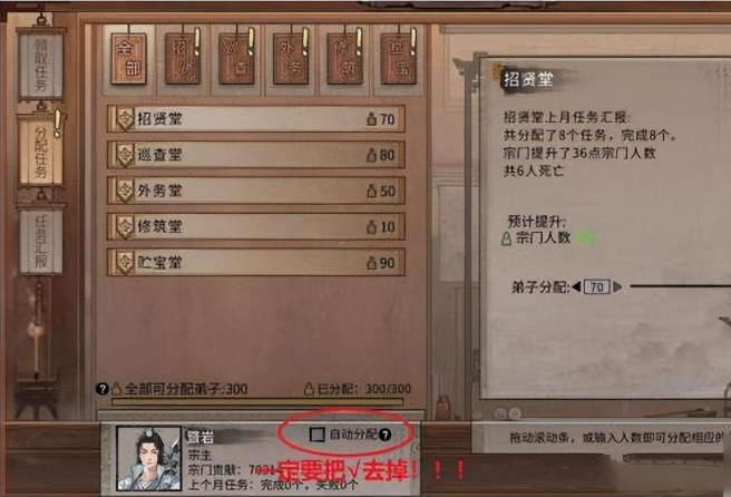 成为宗主后,第一件事就是自动分配任务!游戏中的自动任务分配很差。如果宗门交给系统管理的话,那就彻底乱了。不管你把宗门管理得多么好,系统分分钟就会让你破产!
