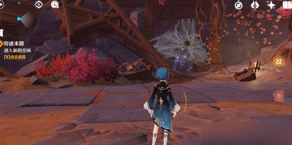 1、首先我们需要进入秘境之后来到第一空间,向后转炸掉炸药桶之后,此处的第二空间会出现一个宝箱。