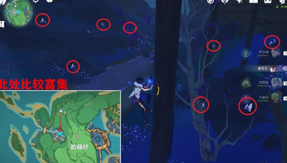 踏鞴砂炉心右边传送锚点,下方有一块鸣草富集区,可以拍摄。