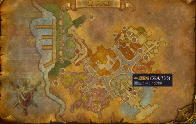 1、暴风城贸易区的本·提亚斯(坐标66.4,73.5)。
