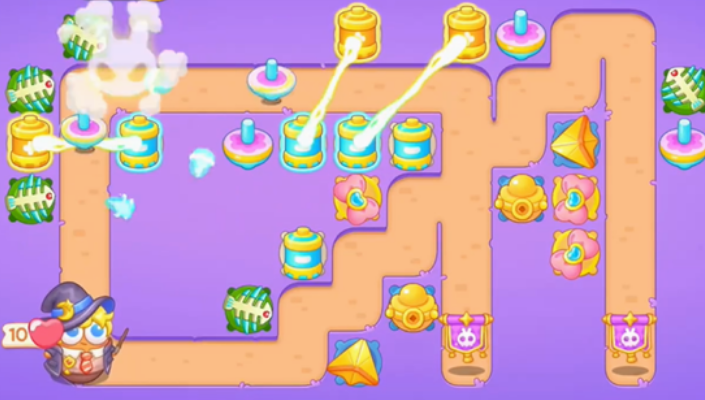 3、清理出位置之后我们增加炮台的数量强化伤害能力,尽快拿到全清继续清理剩下的道具。
