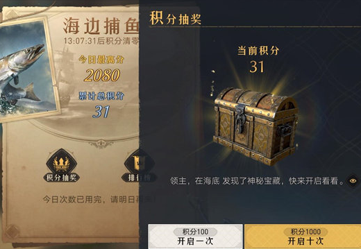 通过海边捕鱼玩法获得的积分抽奖可以获得大量肉,每天能捕鱼三次,算下来至少是大几十w肉可以直接拿到;