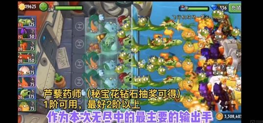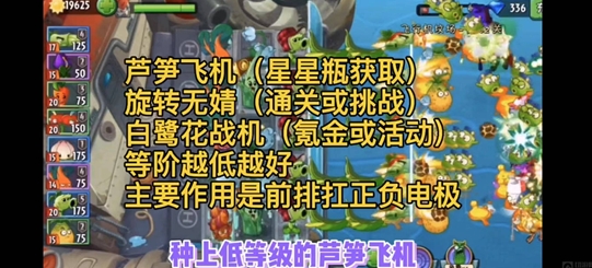 1、由于天空无尽的场地因素,导致我们能够在陆地上种植的植物只有15个。首先我建议大家在最前排种上低等级的芦笋飞机或者低等级的旋转芜菁。