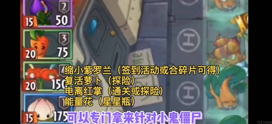 ①缩小紫罗兰:缩小紫罗兰的话可以专门拿来针对小鬼僵尸。