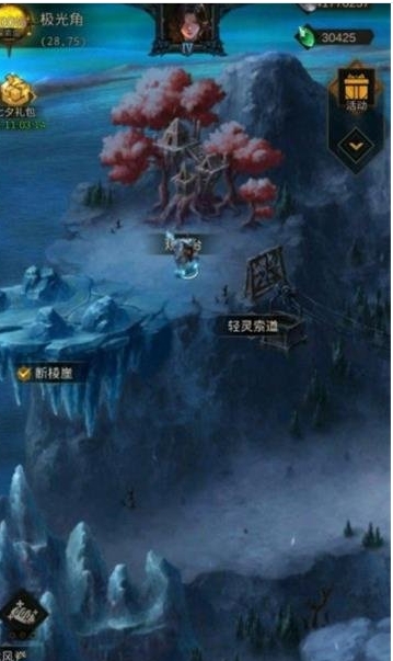 2.首杀路线:觅雪坡于老人对话一点击觅雪坡选择抢先攻击一回光栈道一荒古祭坛一轻灵索道(首杀BOSS),这个比较简单的,开始我们必须要把这boss干掉。