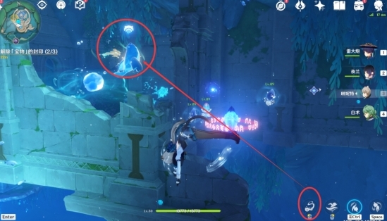 第三处需要我们借助一下这里的生物力量获取水下特殊技能来进行战斗,随后解锁激活机关。