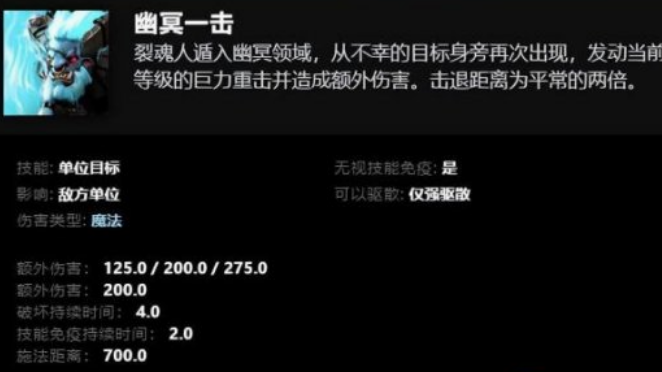 大招:幽冥一击 意为使用强有力的力量一击,将敌人瞬间击败。