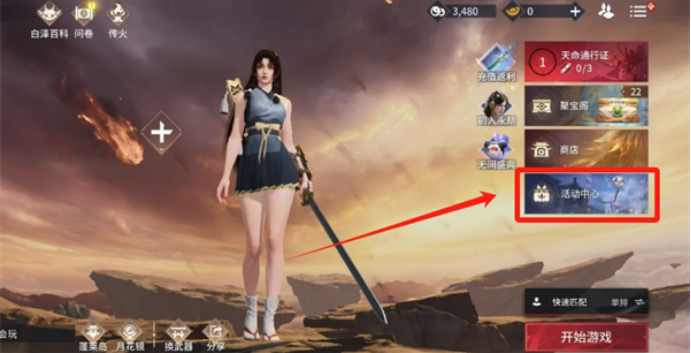 1、打开手机上的永劫无间手游,在游戏大厅界面点击右侧的【活动中心】;