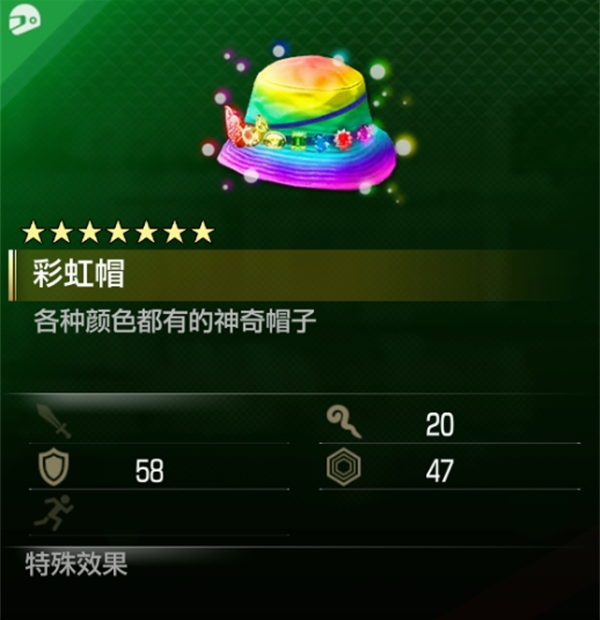 物品介绍:7星绿色装备;各种颜色都有的神奇帽子。