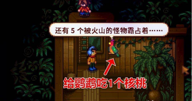 3、找到里面有1个npc和1只鹦鹉的小房子,给鹦鹉吃1个黄金核桃。