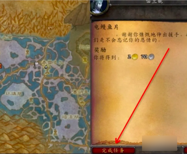 打开地图,去赞加沼泽,找泰雷多尔的诺兰妮对话,并接取电鳗鱼片任务