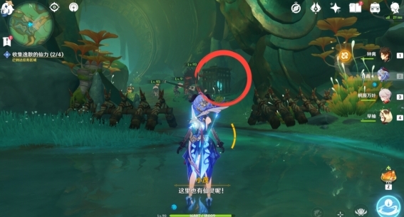 第三处:击败此处丘丘人,放出仙灵,跟着仙灵走,即可获得1仙力。